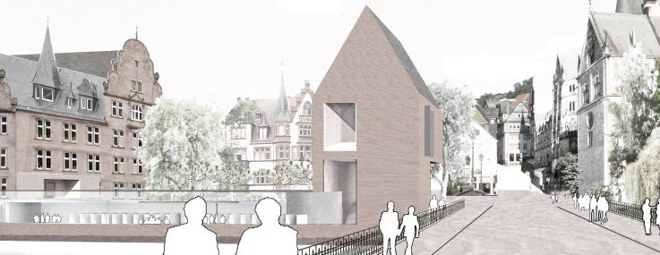 Das Lahnufer   wird ausgedünnt, eine Plattform schafft Überblick, dient als Bühne und   Treffpunkt.  Die Achse   von der Altstadt zur Lahn ist sichtbar wieder hergestellt und begehbar.