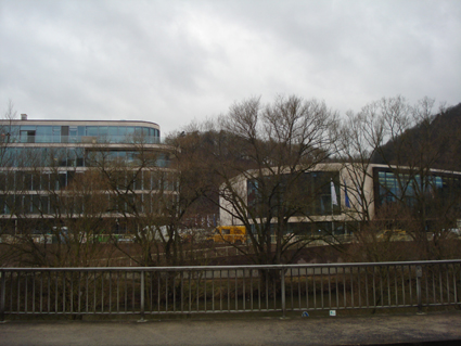 Nach Vollendung des Innenausbaus wird man sehen, wie weit eine eventuell hell erleuchtete Glasfassade die architektonische Dominanz des Verwaltungsgebäudes bei Dunkelheit noch verstärkt. Schon jetzt aber dürfte die langgestreckte und hohe Glasfassade zu einer Steigerung der Reflektion des Lärms der davor liegenden Stadtautobahn beitragen. Da böte sich an, dass die DVAG als „Ausgleich“ Rückbau und Untertunnelung der B3a finanziert. Für die mit der Bahn anreisenden Kursteilnehmer der DVAG wäre dann zumindest ein besserer Blick auf ihr Zentralorgan gewährleistet, wenn schon nicht mehr auf ein einladendes Entree zur Universitätsstadt Marburg.