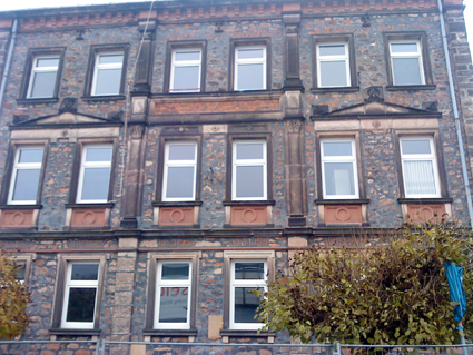 Rein handwerklich scheint das gelungen, wenn auch nicht in allen Details ursprungsgetreu durchgeführt. So sind die Fenster an den Hausseiten nur noch durch Umrisse angedeutet und der Hauseingang ganz verschwunden. Die neuen Front- Fenster des Hauses sind nicht mehr unterteilt wie früher und wirken nun tagsüber wie tote Augen in einem maskenhaften Antlitz dieses Haus-Anhängsels, das mit dem früheren Haus aus unverputztem Sandstein-Bruchstein-Mauerwerk nichts mehr gemein hat. Das alte Haus ist weg, es kann durch Fassaden-Zitate oder in Fachkreisen längst als unzeitgemäß geouteten Fassaden-Historismus nicht wieder zum Leben erweckt werden. Es wird ein Zustand suggeriert, der in Wahrheit nie existiert hat. Stattdessen haben die Planer ein Stück Disneyland und Hessenpark ins Nordviertel geholt.