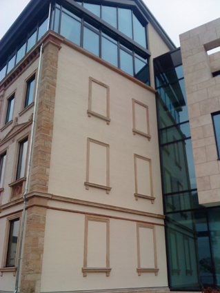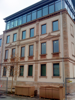 Nachdem der inzwischen pensionierte Denkmal"pfleger" Baumann dem "größeren Volumen des DVAG Projektes den Vorrang" gegenüber dem Denkmalschutz der Rosenstraße9 gegeben hatte, wurde diese abgerissen und die Fassade für eine spätere Verwendung aufgehoben. Inzwischen steht das Tagungs-und Museumszentrum der DVAG und man kann sehen, wie die ehemalige Fassade auf den Neubau aufgebracht wurde - oder auch nicht.....