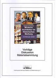 Jahrzehntelang  hatte man in Marburg nicht mehr öffentlich über Architektur gesprochen und  diskutiert –  bis zum   Februar 2010. Im vollbesetzten Stadtverordnetensitzungssaal veranstaltete die IG  MARSS e.V. einen Abend, an dem von drei auswärtigen Fachleuten mit den  Marburgern Klartext über die in den letzten Jahrzehnten entstandene Architektur  gesprochen wurde.                           Die  überraschend übereinstimmenden Ansichten und die Ergebnisse dieser auf hohem  Niveau durchgeführten Veranstaltung hat die IG MARSS nun in einer 20seitigen  Dokumentation zusammengefasst.In ihr werden nicht nur die Vorträge (u.a. der Stadtrundgang der Architekturkritikerin Ira Mazzoni) mit vielen Fotos abgedruckt, sondern auch die wesentlichen Aussagen der Podiumsdiskussion thematisch zusammengefasst wiedergegeben. Eine ergänzende Materialsammlung aus anderen Publikationen soll Kriterien und Forderungen an ‚Gute Architektur‘ an die Hand geben. Abgerundet wird das Heft durch die über die Veranstaltung erschienenen Presseberichte. Das Heft kann zum Selbstkostenpreis von 3.50 (incl. Porto für die Zusendung) bei der IG MARSS e.V. über info@stadtbild-marburg.de bestellt oder als PDF kostenlos von der Internetseite www.stadtbild-marburg.de heruntergeladen werden.